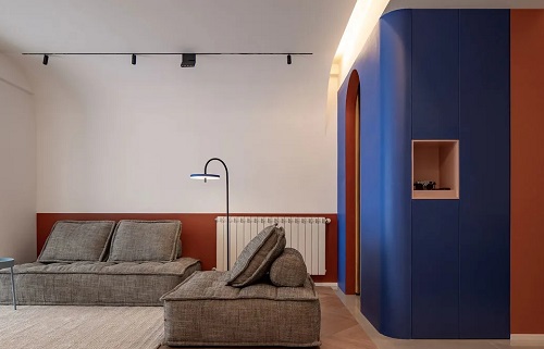 不同油漆色彩的碰撞拼接,会自然产生一或多个线条。这也是最简单,成本最低的增加空间线条感的方式。