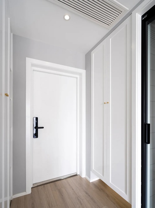 由于最窄的入户门宽度是86cm,若入户走道两侧规划面对面的收纳柜体,则走道宽度不要窄于90cm。