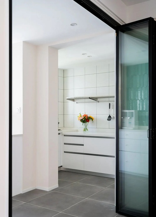 半开放式厨房其实是对油烟最后的倔强,担心油烟问题,又想做开放式厨房,于是,聪明的95后们,想出了半开放式的设计。做饭时,把厨房的门完全关起来。平时完全打开,整体是一个开放式空间。