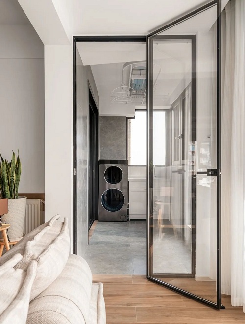 现在长阳台的户型很常见了,如果你家是长阳台,可以将阳台面积对半分,一半的空间规划为洗衣房。如果家里没有那么大的阳台,也可以将阳台的一小部分用门体隔开,规划1㎡的小洗衣房。