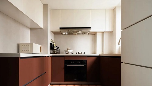 至于说不包入橱柜,油烟机不好擦,包入橱柜,橱柜不好擦,这个可能还是擦橱柜柜门更方便一点?小编觉得主要还是做不做吊柜的问题,做吊柜一般还是会把油烟机包起来的。主要就是看收纳空间够不够吧。