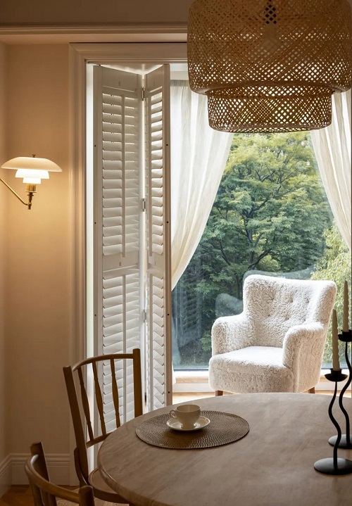 百叶帘的光影感非常好,特别是那种太阳照进来,阳光被分割成了一道道的感觉很治愈。另外,像卫生间或者厨房,还有一些窗户比较小的情况下做布帘其实是不好看的,太小也不合适拉,这时候用百叶就是很好的选择。