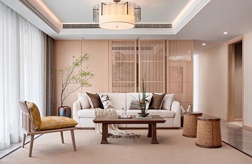 在新中式设计中,家具是很关键的一点,既使墙顶地看不出来新中式的风格,也可以通过带有中式风格特点的家具来营造。