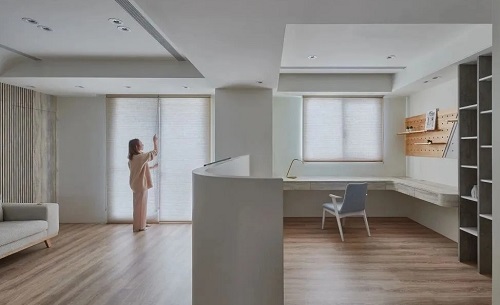 对于一些不讲究私密性的空间,在原本采光条件不太好的情况下,完全可以考虑开放式设计,如开放式书房/多功能区。