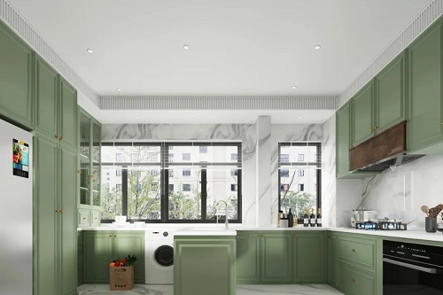 U型厨房,顾名思义,即是厨房呈U字布局;适合宽度较宽的厨房设计,大厨房小厨房都可以。