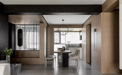 木饰面板质朴自然,有高级感,非常适合用于简约风的装修。