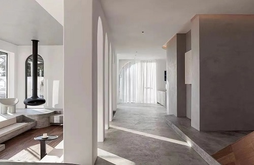 水泥材质的地台在家居日常中的应用较为少见,常见于大面积工业风室内外设计。