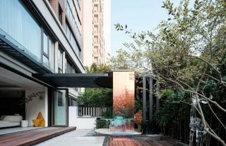 地面庭院是最常见的家庭庭院,非常接地气,从住宅延伸出户外,两个区域之间以门窗相隔,住宅内休闲也有野营感。因为和住宅区位于一个平面,在室内也能看到室外造景,为室内也提供了装饰元素,像是把家搬进了森林。地面庭院的造景工艺都比较成熟,有很多参考案例,风格多变,视觉上也相对开阔,适合营造大气、宽敞的开放空间。