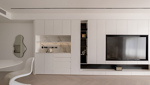 ②电视收纳区尺寸要精准,要提前确认电视尺寸。建议做15cm左右厚的打底,不然整体看上去不协调;