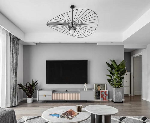 这几年最流行的是北欧风格和现代简约风格,都是以简为主的,很少凹造型,所以在电视背景墙的装修上,也都以简为主。客厅的焦点也不一定要重点放在影视墙上。纯乳胶漆背景墙,挂个电视机,放个电视柜,一颗绿植和一个挂钟点缀一下,清清爽爽的也挺好。而且预算也省了很多,越是复杂的立面造型花费越高。